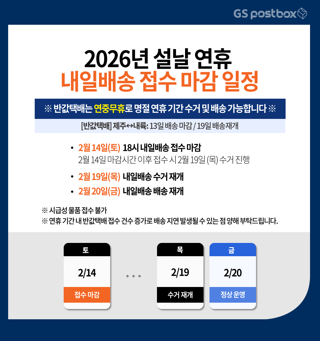 [공지] 2026년 설날 연휴 내일배송 접수 마감 일정